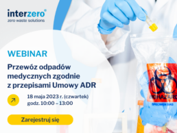 Serdecznie zapraszamy na webinar pt. „Przewóz odpadów medycznych zgodnie z przepisami Umowy ADR”, który odbędzie się już 18 maja 2023 roku (czwartek).
